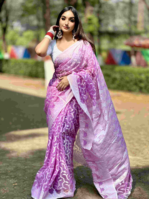 সম্পূর্ণ শাড়ীতে চিকন সূতায় অসাধারণ ডিজািইন করা।